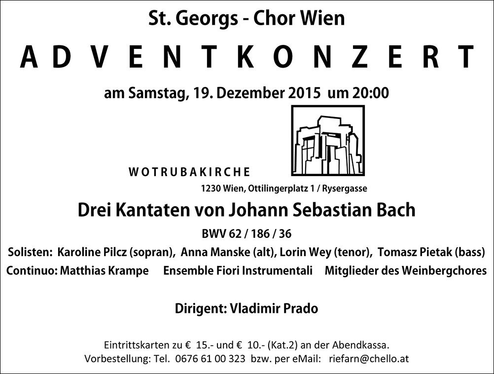Sa 09.12.2017, 19:45 Erlöserkirche + So 17.12.2017, 18:00 Wotrubakirche